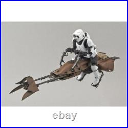 A base reminiscent of the surface of Endor is included to recreate the speeder bike flying through the forest. The scout trooper is 152.5mm in height. Each joint is movable, allowing you to recreate the speeder bike riding poses or the speeder bike standing on its own in action poses.